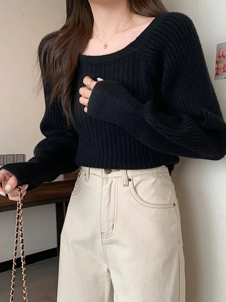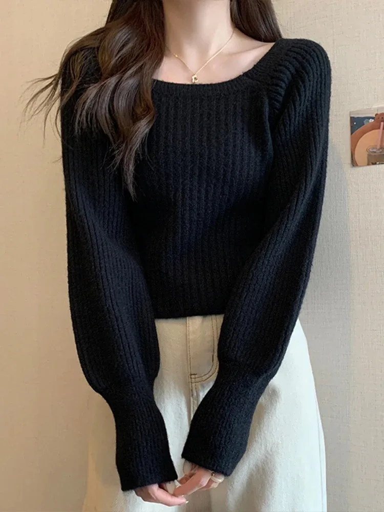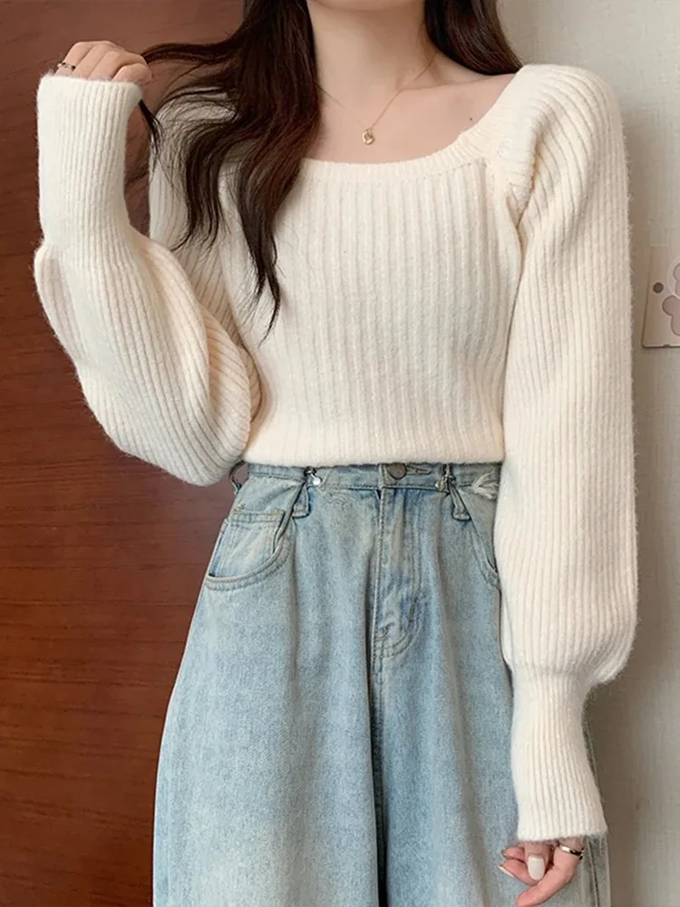 Women Sweaters Casual Soft Long Puff Sleeve Pullovers Jumpers Knitwear Basic Sweater For Women Tops