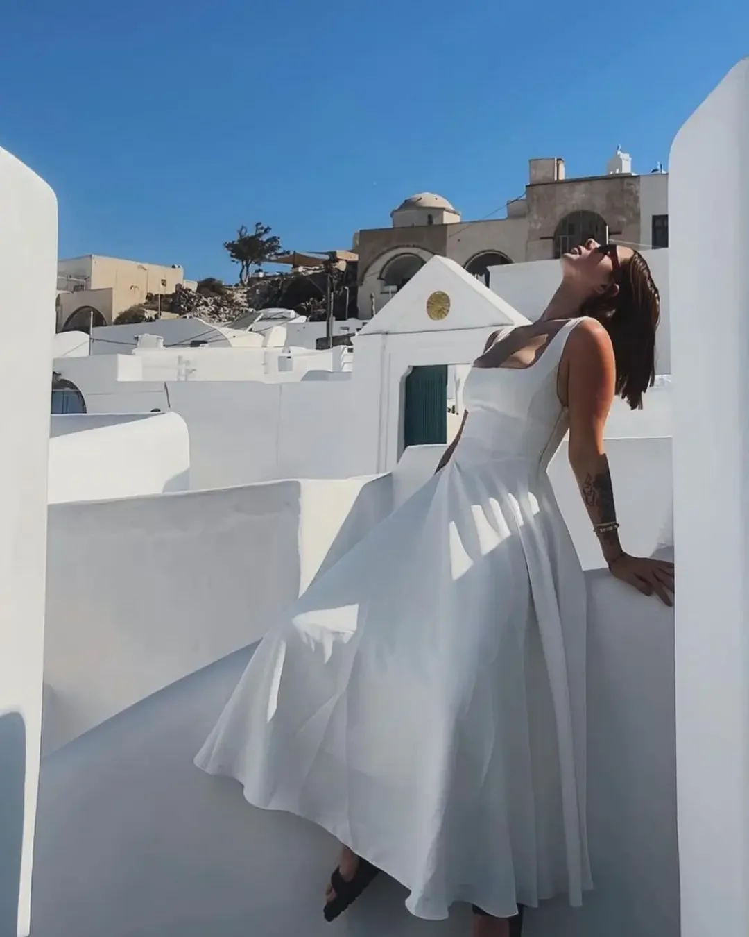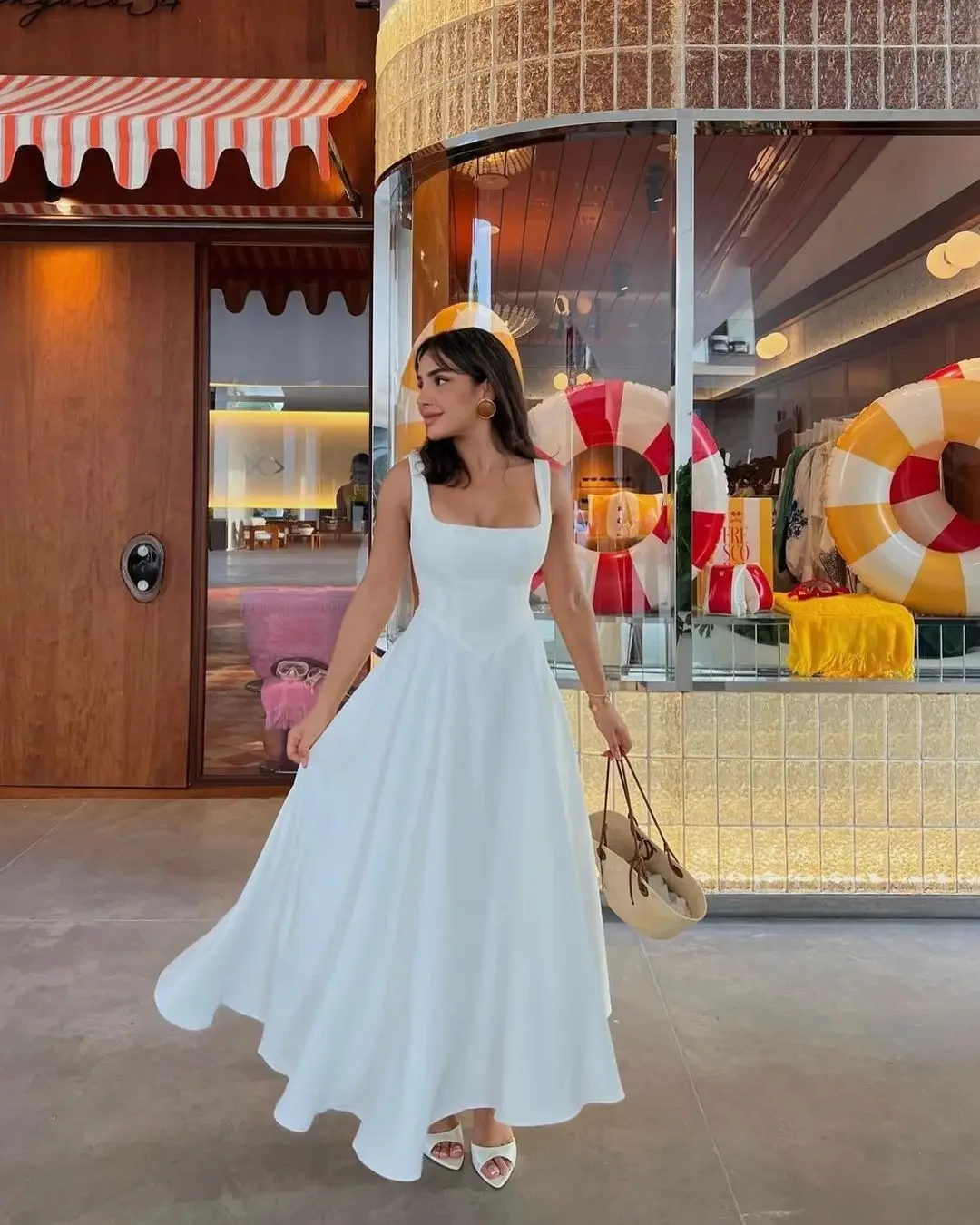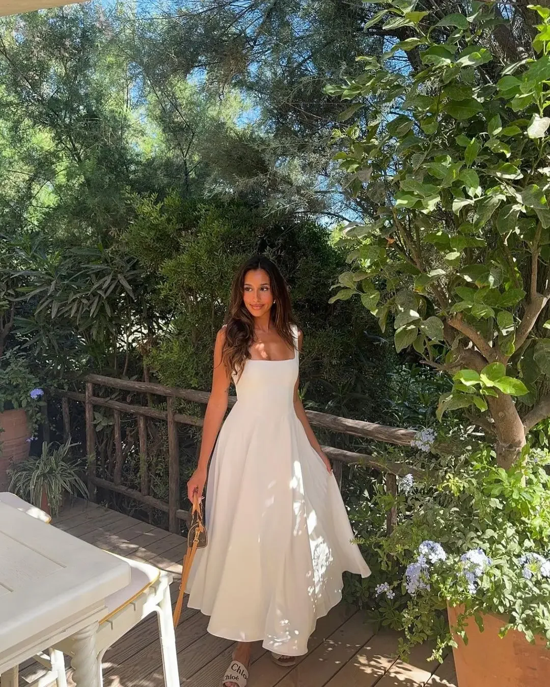 Elegant Women's High-waisted Halter Midi Dress Fashion Square Neck Backless A-line Dresses 2025 Spring Lady Beach Vacation Robes