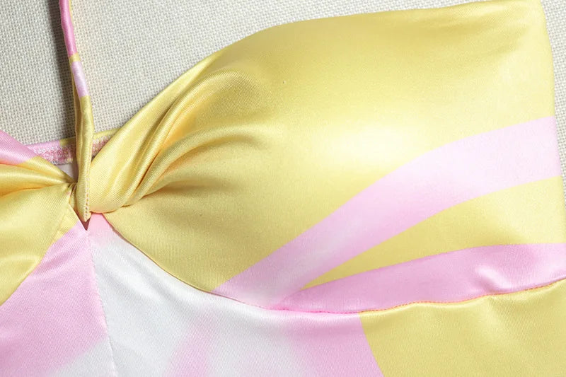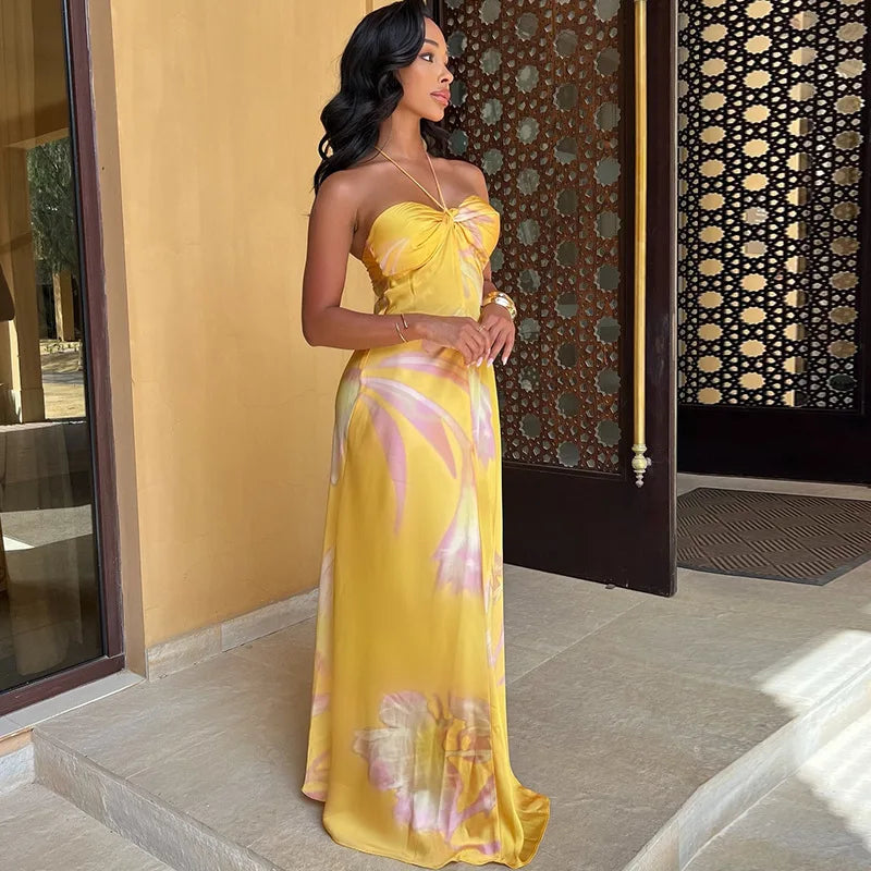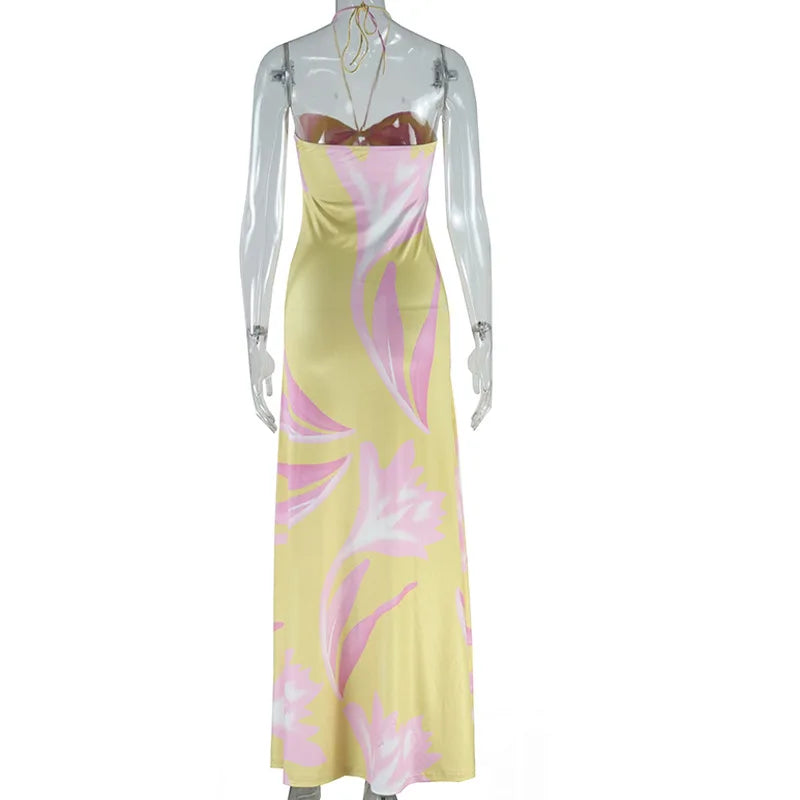 Women's Floral Print Sexy Halterneck Strappy Strapless Backless Slim Long Dress